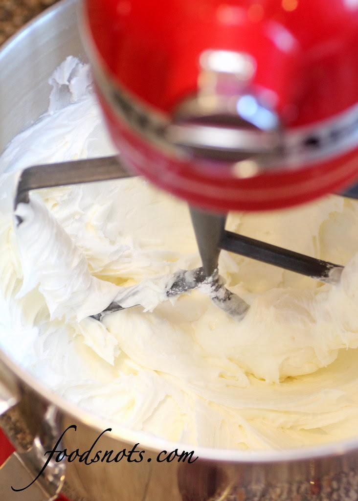In the bowl of a mixer, combine butter and 4 tablespoons cherry juice. Slowly add powdered sugar, beating on low until just combined. Increase speed to high and beat for about two minutes. I added red food coloring to deepen the frosting color, but it's not necessary.